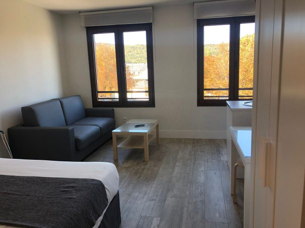Nuestra casa se encuentra dividida en 9 estudios para 1/3 personas con cama de 150cm con colchon y almohadas ambos viscoelasticas y sofá-cama, baño completo (plato de ducha), cocina con vitro, Horno/micro-ondas, nevera, TV, conexion a internet por cable o wifi Disponemos de: